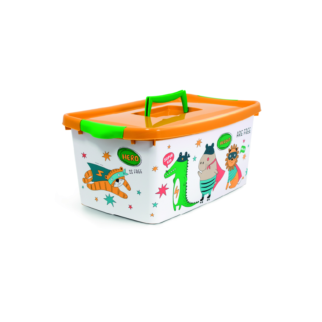 El Baúl Coliseo IML Fantasy Animals con Asa y Cierres Héroes es la solución perfecta para mantener el orden en espacios infantiles con un diseño alegre y lleno de imaginación. Sudecoración con tecnología IML (In Mould Labeling) presenta divertidos animales contemática de superhéroes, aportando color y personalidad a cualquier habitación.